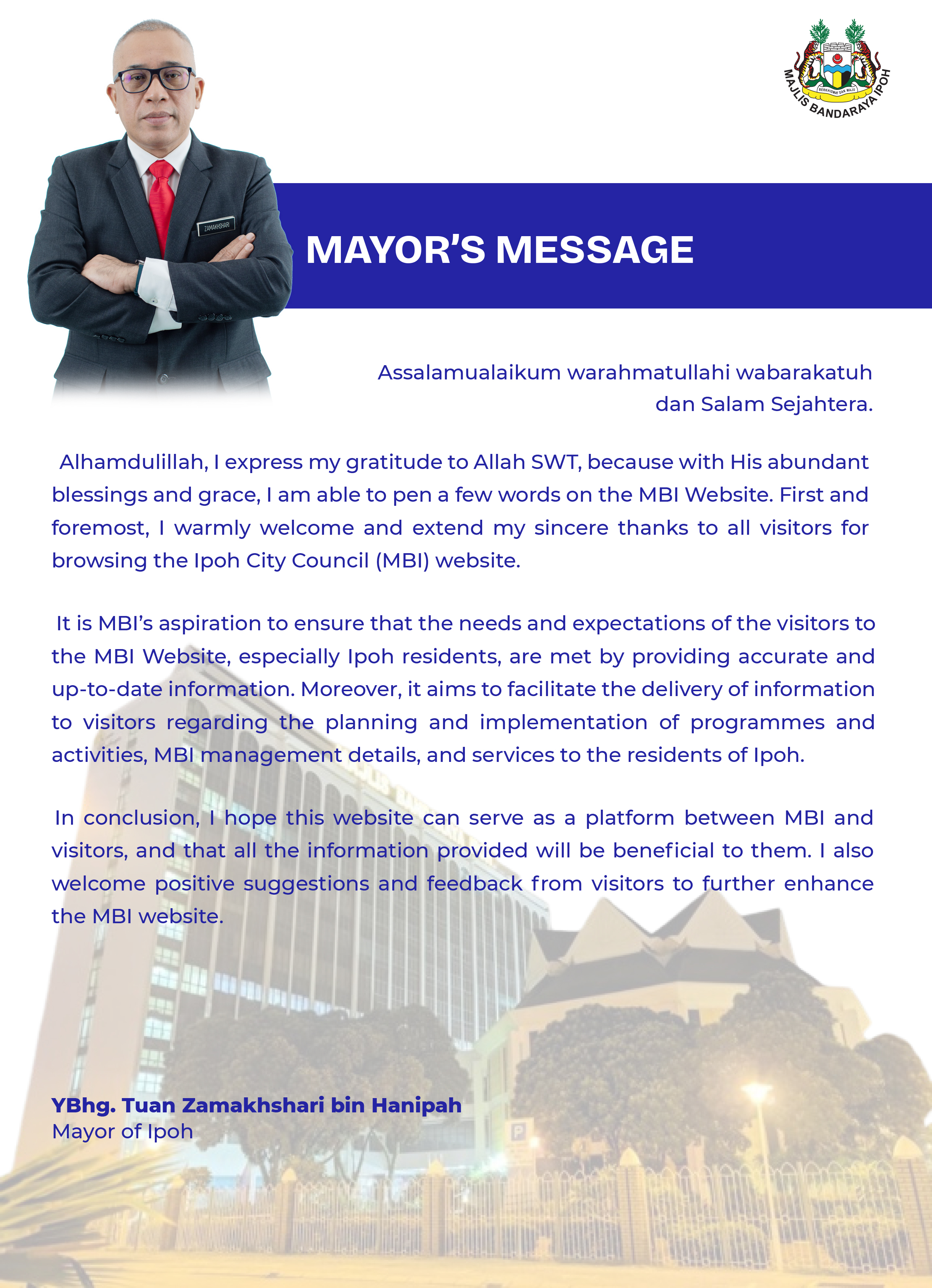 Copyright © 2023 Ipoh City Council (MBI). Suitable for displaying using IE version 9 & above, Mozilla Firefox version 6.0 above and Google Chrome 13.0 above with a resolution of 1024 x 768 above. Update: