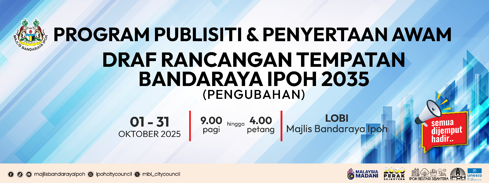 Your presence and views are highly welcomed and appreciated in order to make the sustainable development efforts of Ipoh City a success.