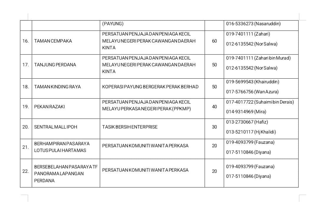 Para peniaga boleh menghubungi penganjur-penganjur yang tersenarai sekiranya berminat untuk berniaga di Bazar Ramadan pilihan. Sila mohon segera kerana bilangan petak adalah terhad di setiap lokasi.