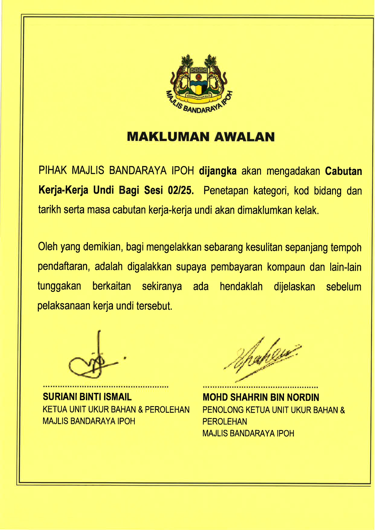MAKLUMAN AWALAN CABUTAN KERJA-KERJA UNDI BAGI SESI 02/25