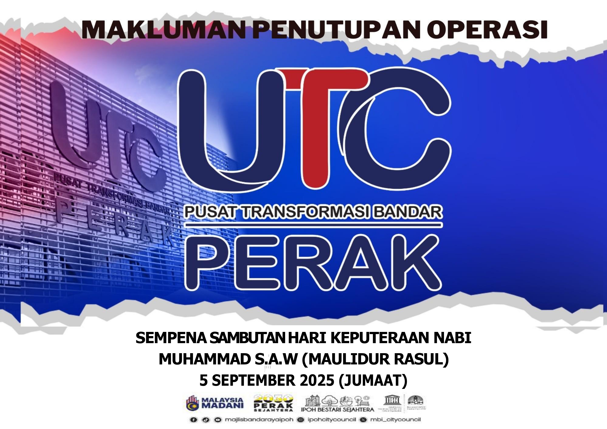 MAKLUMAN PENUTUPAN OPERASI UTC PERAK SEMPENA SAMBUTAN HARI KEPUTERAAN NABI MUHAMMAD S.A.W. (MAULIDUR RASUL)